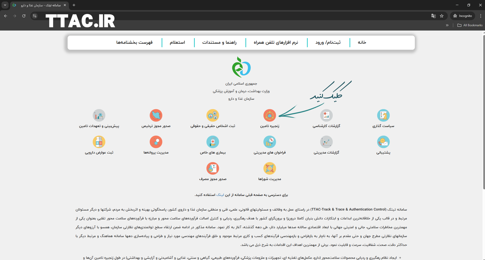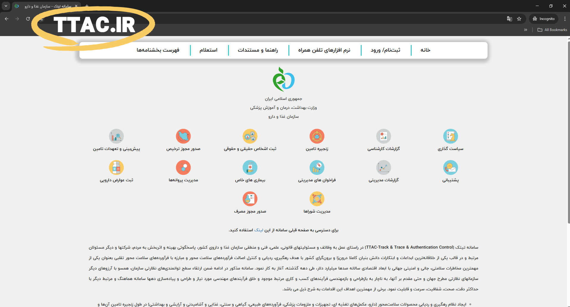 ابتدا وارد وب‌سایت رسمی سازمان غذا و دارو به نشانی www.ttac.ir شوید.