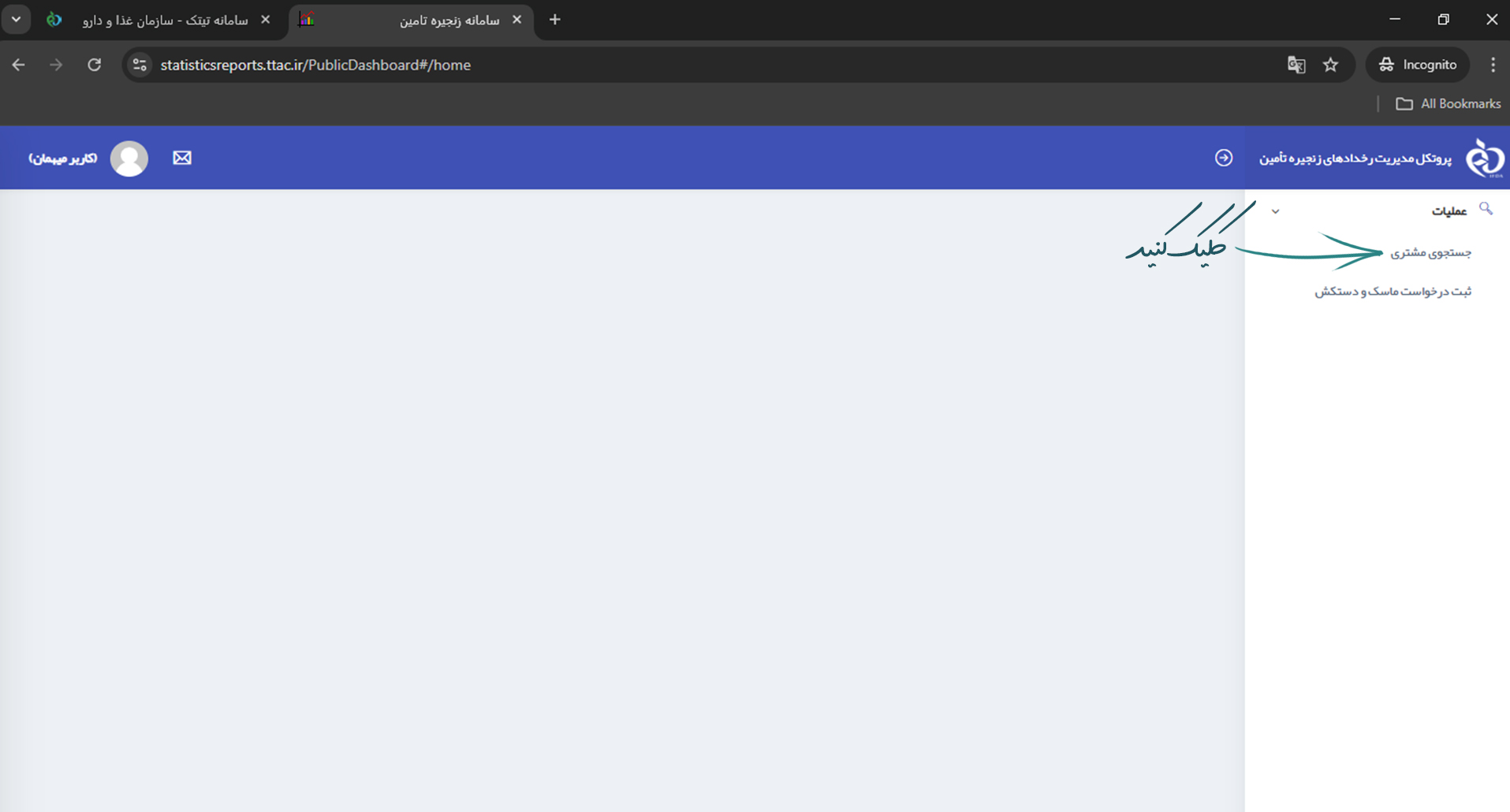 روی آن کلیک کنید تا صفحه‌ی جستجوی اطلاعات مشتریان باز شود.